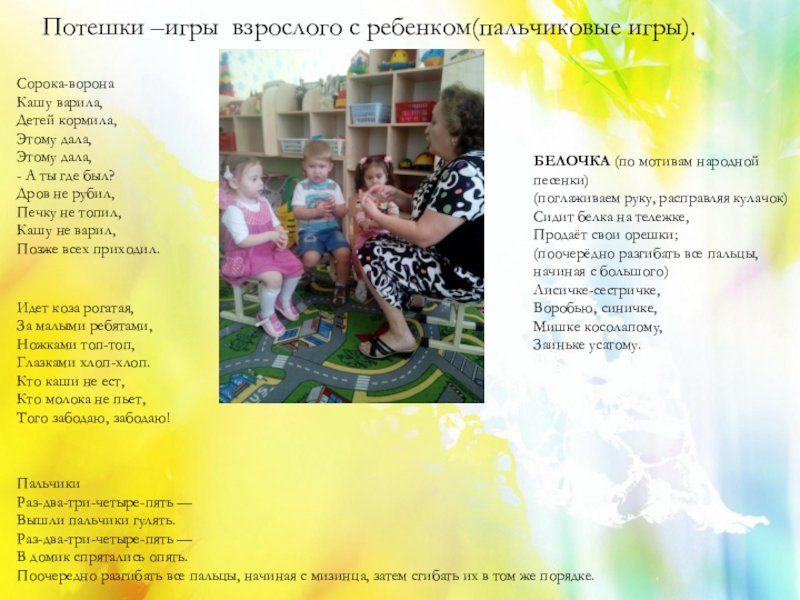 Пестушки –песенки ,которыми сопровождается уход за ребёнком