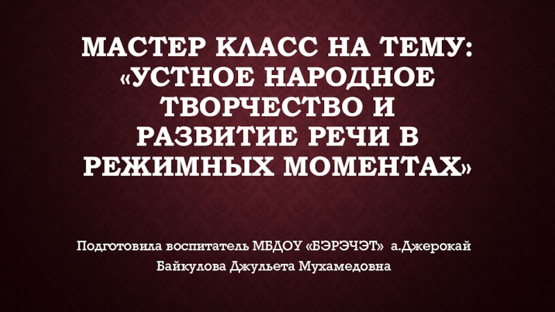 Подготовила воспитатель МБДОУ «БЭРЭЧЭТ» а.Джерокай Байкулова Джульета Мухамедовна