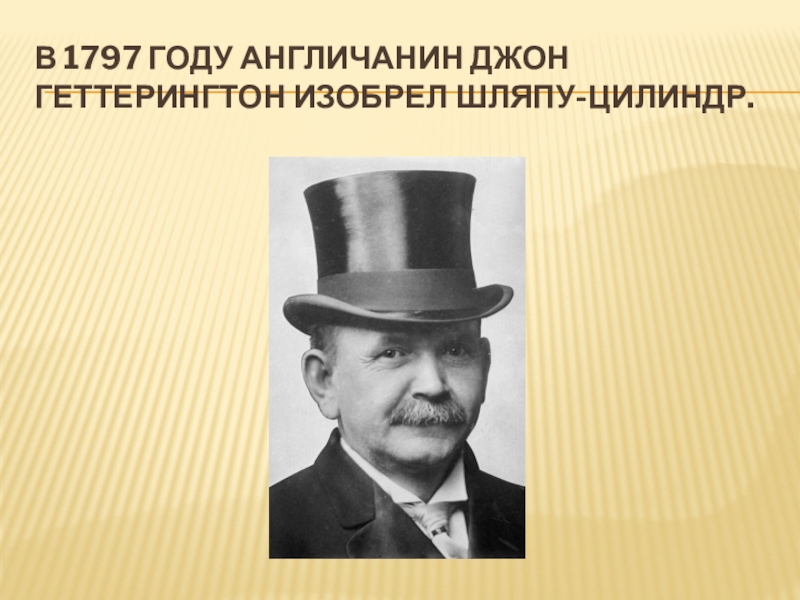 Слайд 11В 1797 году англичанин Джон Геттерингтон изобрел шляпу-цилиндр.