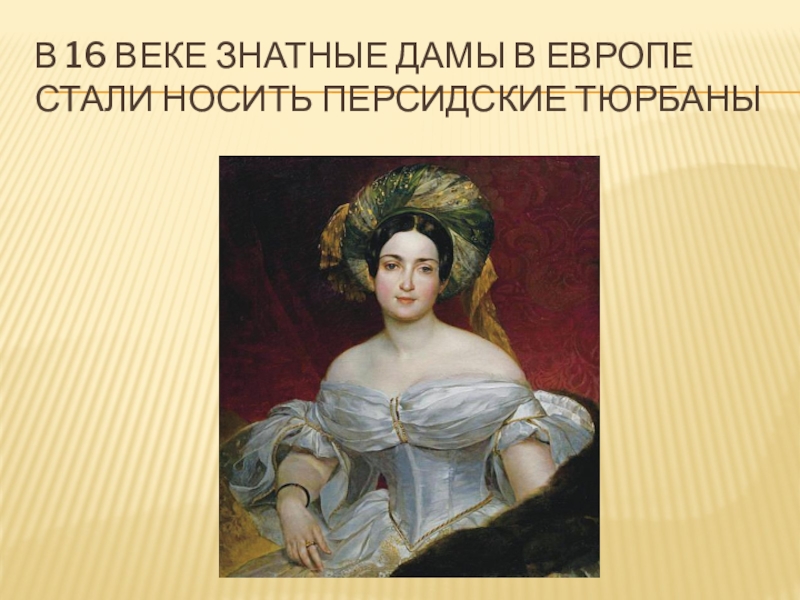 Слайд 5В 16 веке знатные дамы в Европе стали носить персидские тюрбаны