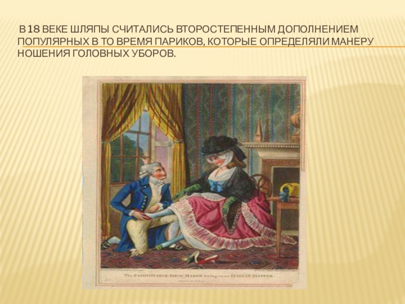 Слайд 8 В 18 веке шляпы считались второстепенным дополнением популярных в то время