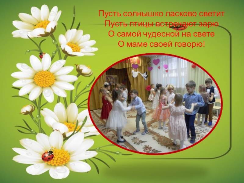 Слайд 3Пусть солнышко ласково светит Пусть птицы встречают зарю О самой чудесной на свете О