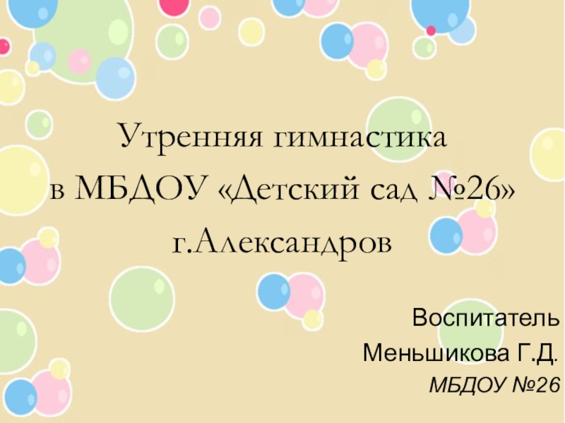 Утренняя гимнастикав МБДОУ «Детский сад №26» г.АлександровВоспитательМеньшикова Г.Д.МБДОУ №26