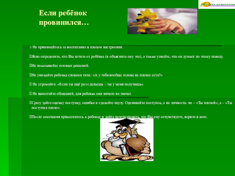 Гораздо большей воспитательной силой обладает прощение проступка,
