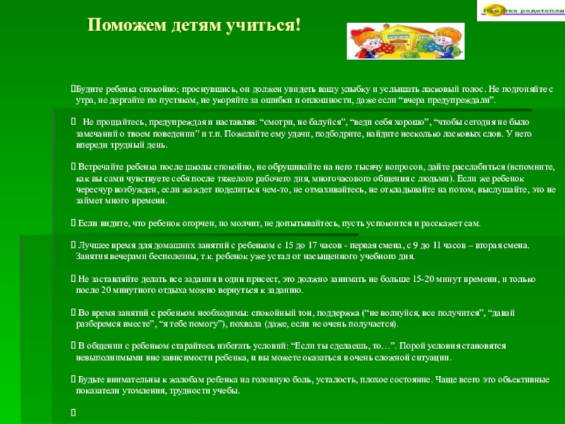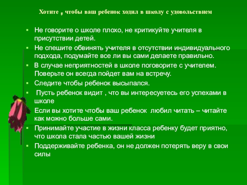 Слайд 9Хотите , чтобы ваш ребенок ходил в школу с удовольствием