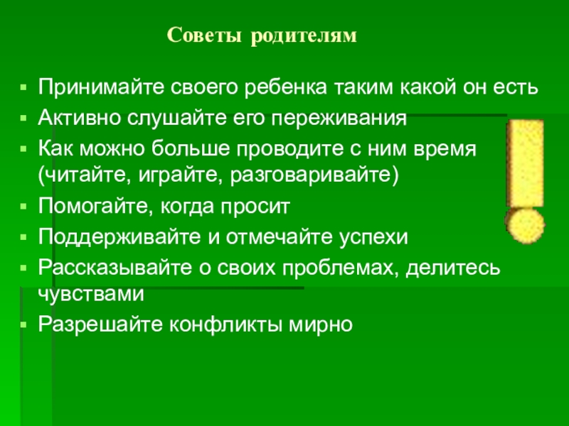 Найдите в течение дня хотя бы полчаса, когда вы будете принадлежать только ребенку! Не отвлекайтесь на домашние дела, телевизор и т.д. В этот момент вам должны быть важны его дела и заботы.