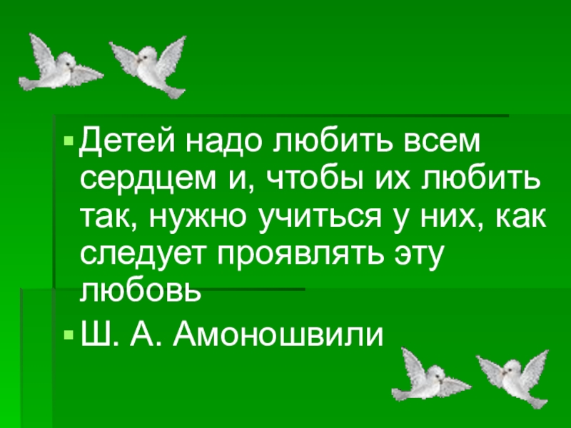 Слайд 3Детей надо любить всем сердцем и, чтобы их любить так, нужно
