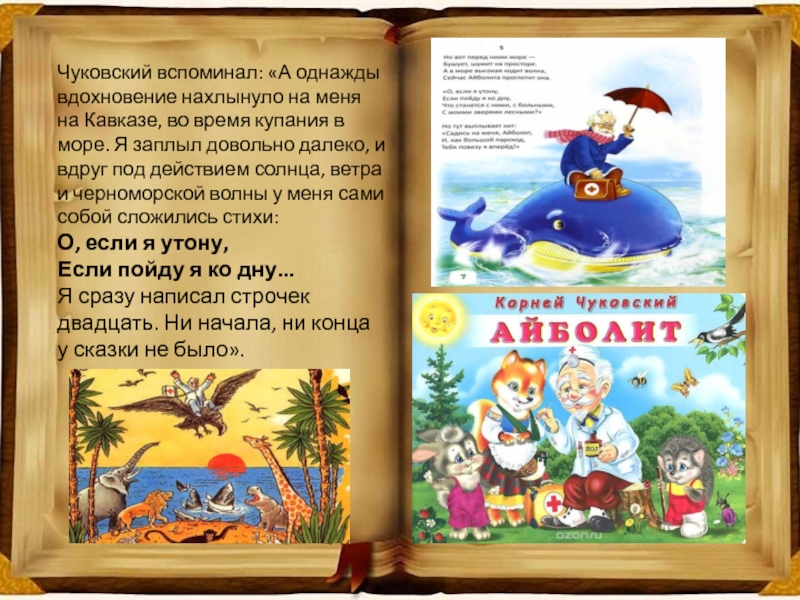 Слайд 10Чуковский вспоминал: «А однажды вдохновение нахлынуло на меня на Кавказе, во