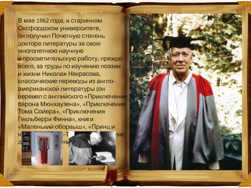 Слайд 6В мае 1962 года, в старинном Оксфордском университете, он получил Почетную степень доктора литературы за свою