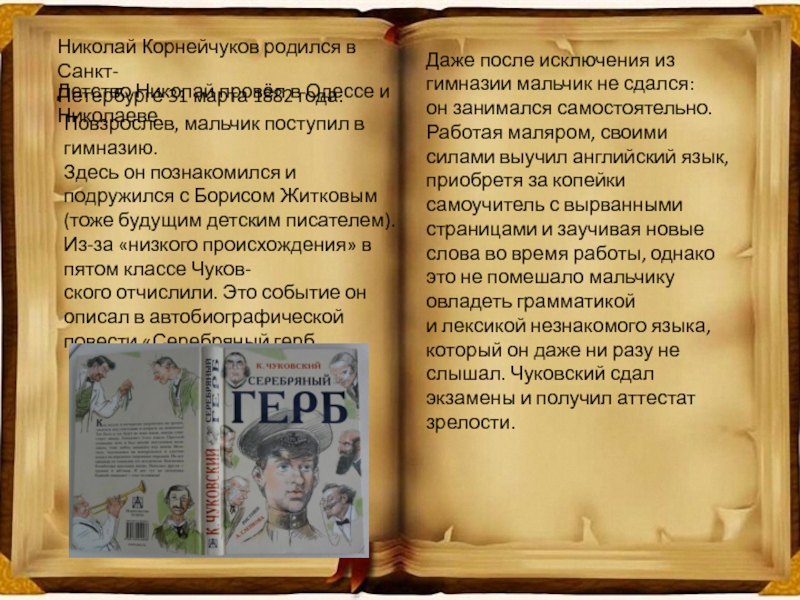 и лексикой незнакомого языка, который он даже ни разу не слышал. Чуковский сдал экзамены и получил аттестат зрелости.