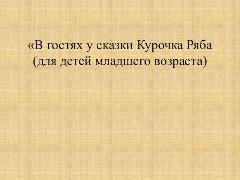 «В гостях у сказки Курочка Ряба(для детей младшего возраста)