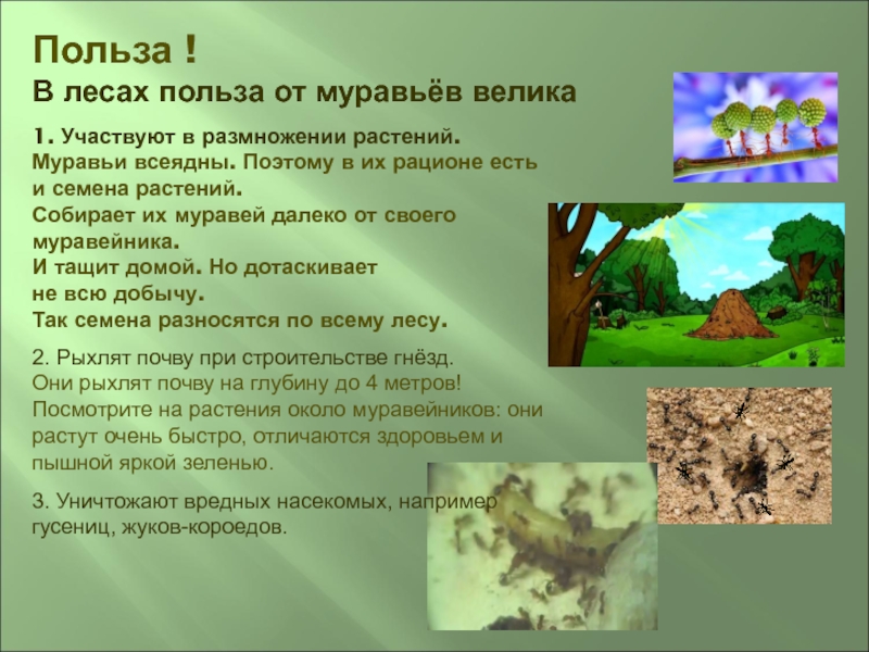 Посмотрите на растения около муравейников: они растут очень быстро, отличаются здоровьем и пышной яркой зеленью.