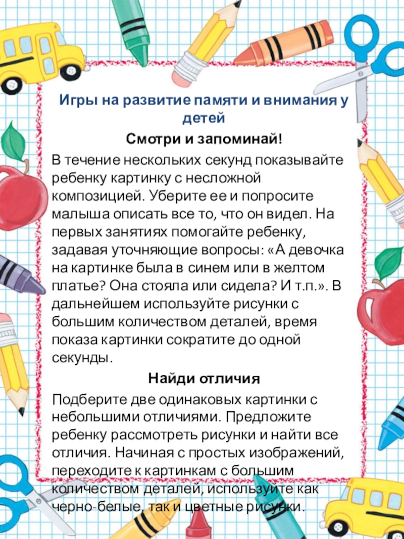 Слайд 22Игры на развитие памяти и внимания у детей