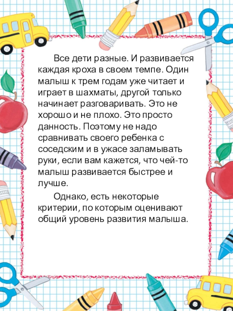 Слайд 2 Все дети разные. И развивается каждая кроха в своем темпе. Один