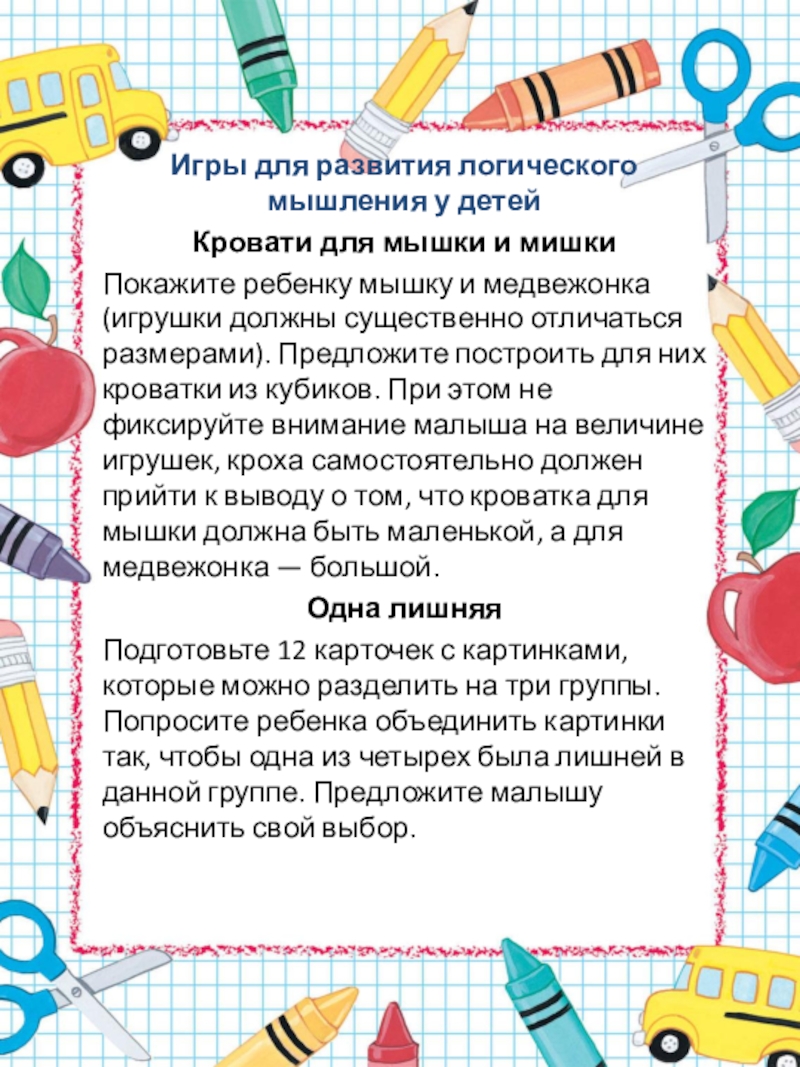 Слайд 19Игры для развития логического мышления у детей