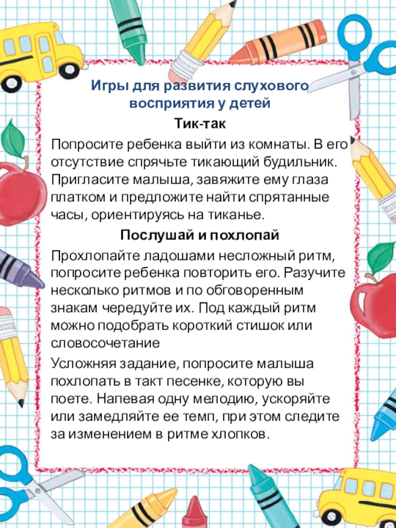 Слайд 16Игры для развития слухового восприятия у детей
