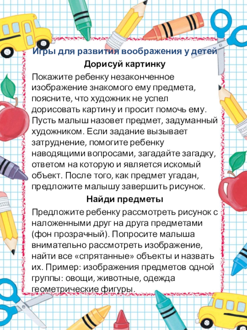 Слайд 20Игры для развития воображения у детей