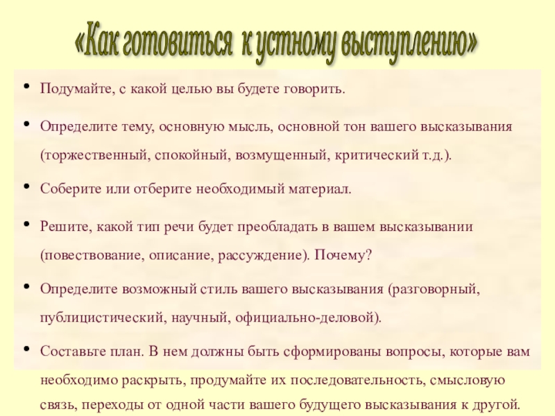 «Как готовиться к устному выступлению»