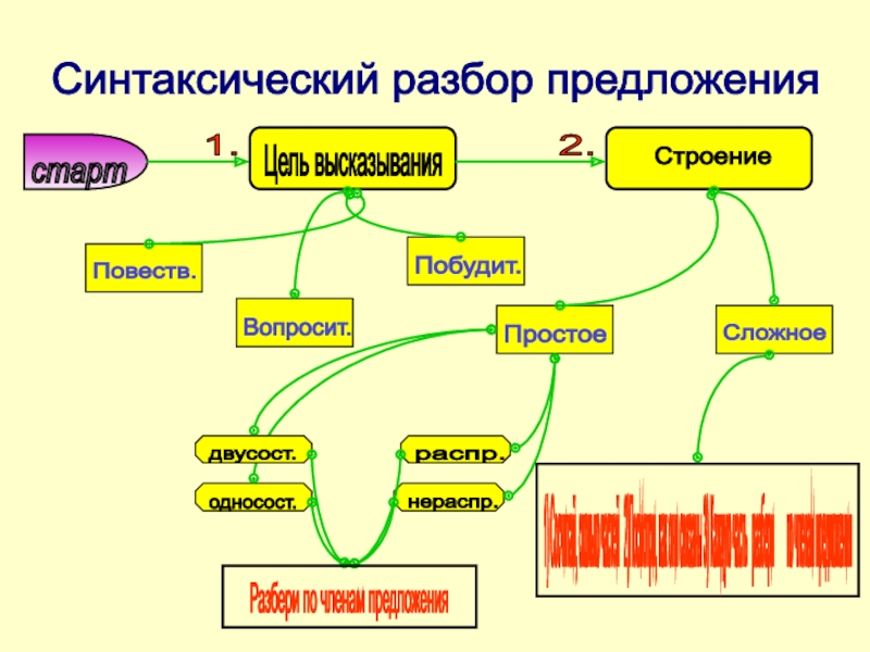 1) Сосчитай, сколько частей 2)Посмотри, как они связаны 3) Каждую часть разбери по членам предложения