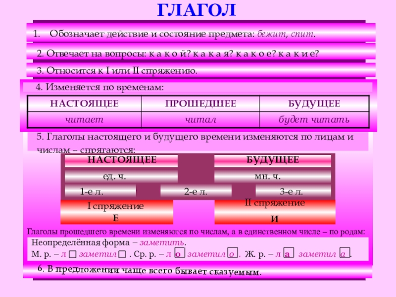 М. р. – л заметил . Ср. р. – л о заметил о . Ж. р. – л а заметил а .