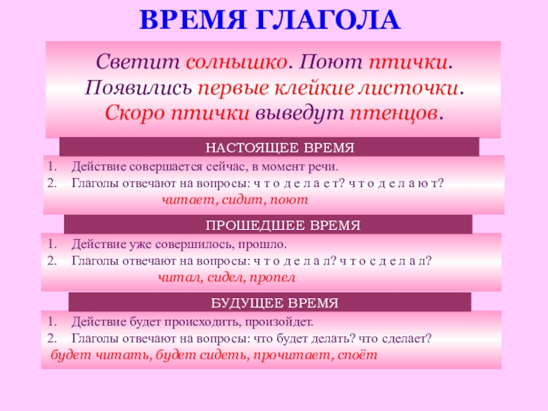 Глаголы отвечают на вопросы: что будет делать? что сделает?