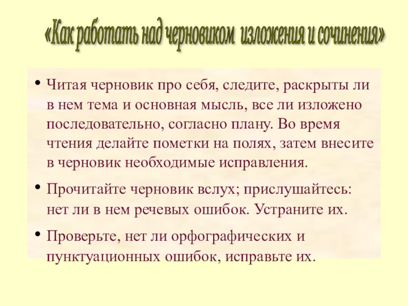«Как работать над черновиком изложения и сочинения»
