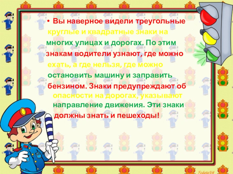 бензином. Знаки предупреждают об опасности на дорогах, указывают направление движения. Эти знаки