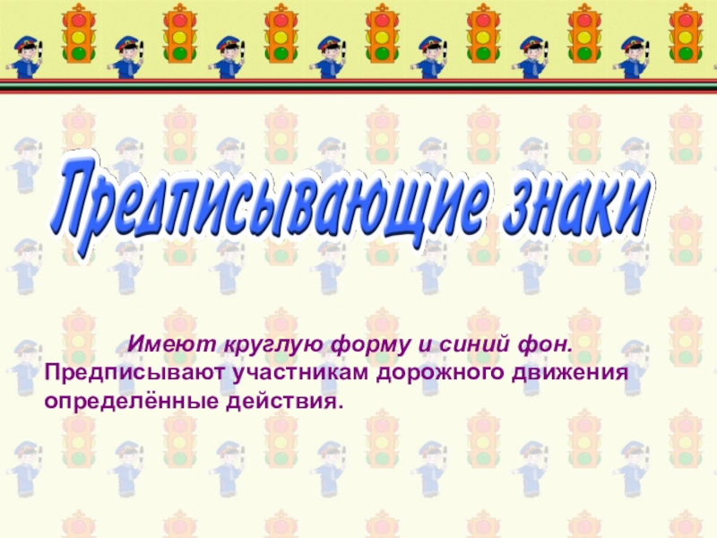 Имеют круглую форму и синий фон.Предписывают участникам дорожного движения определённые действия.