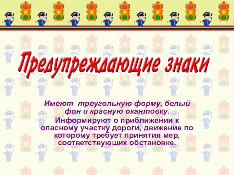 Слайд 5Имеют треугольную форму, белый фон и красную окантовку.