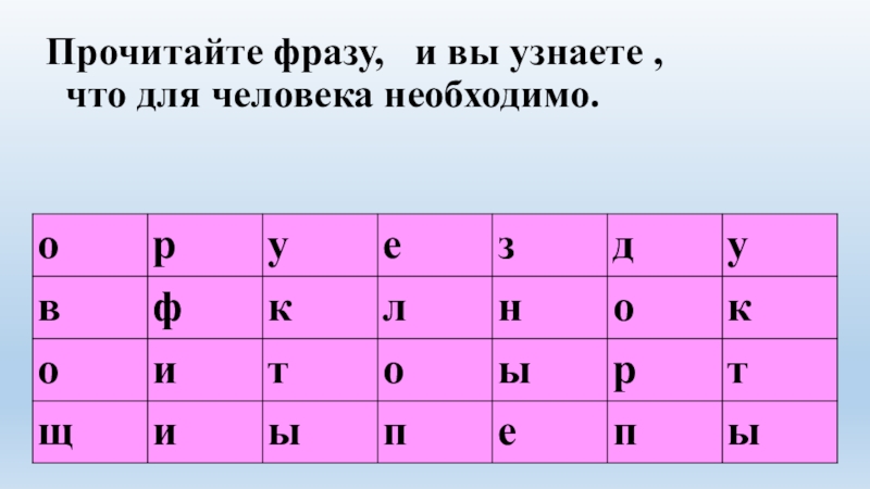Прочитайте фразу,  и вы узнаете ,    что для человека необходимо.