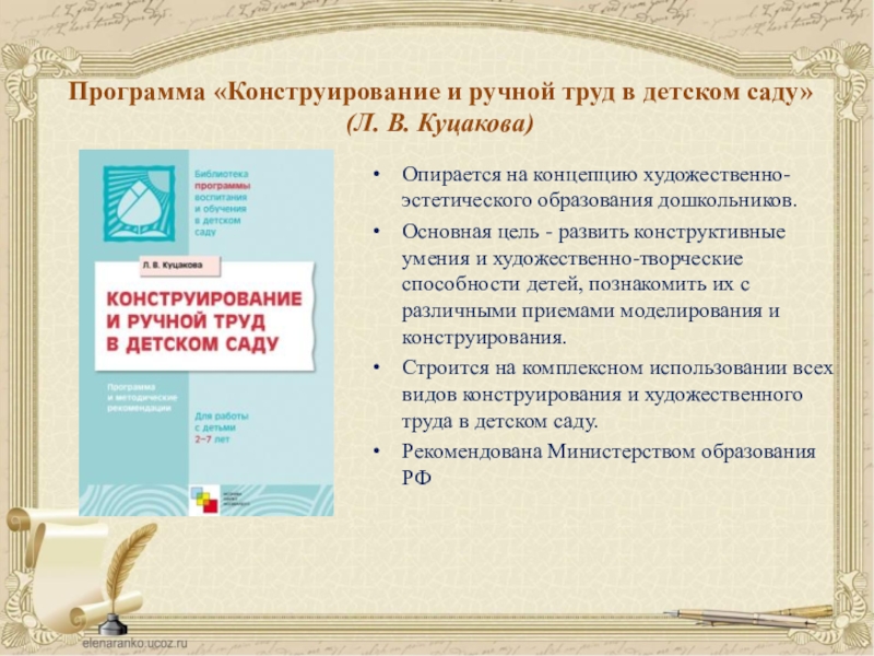 ПРОГРАММА «КОНСТРУИРОВАНИЕ И РУЧНОЙ ТРУД В ДЕТСКОМ САДУ» (Л. В. Куцакова)