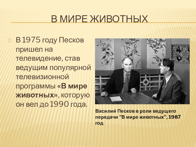 Василий Песков в роли ведущего передачи "В мире животных", 1987 год