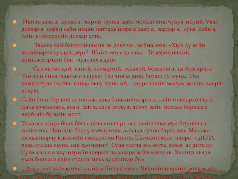 «Вайн хиш чохь хуьлу ч1ерий»