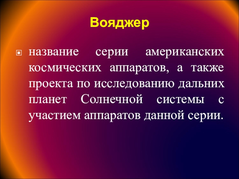 Вояджерназвание серии американских космических аппаратов, а также проекта по исследованию дальних планет Солнечной системы с участием аппаратов