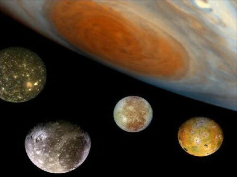 Слайд 25Снимки спутников Юпитера, сделанные Галилео