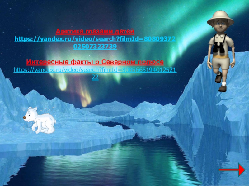 Арктика глазами детейhttps://yandex.ru/video/search?filmId=8080937202507323739Интересные факты о Северном полюсеhttps://yandex.ru/video/search?filmId=808566519401252122