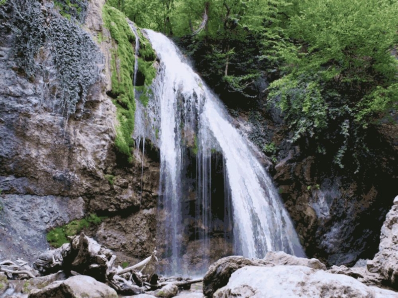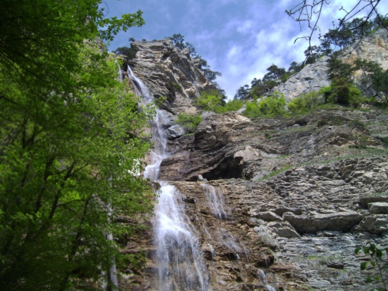 Находится недалеко,Найти его совсем легко.К пещере Красной вы идите,И водопад скорей ищите.Его узнаете всегда,И называется он «Падающая