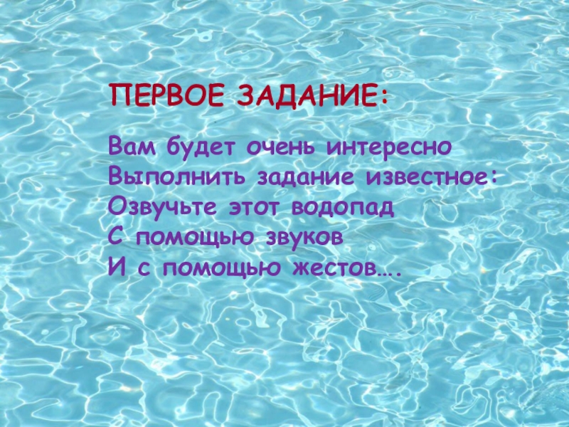 ПЕРВОЕ ЗАДАНИЕ:Вам будет очень интересноВыполнить задание известное:Озвучьте этот водопадС помощью звуковИ с помощью жестов….