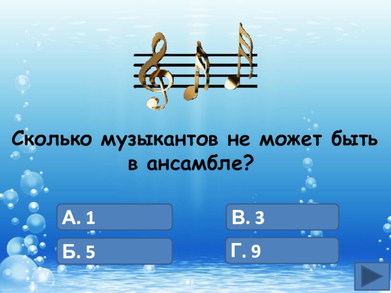 А. 1Б. 5В. 3Г. 9Сколько музыкантов не может быть       в