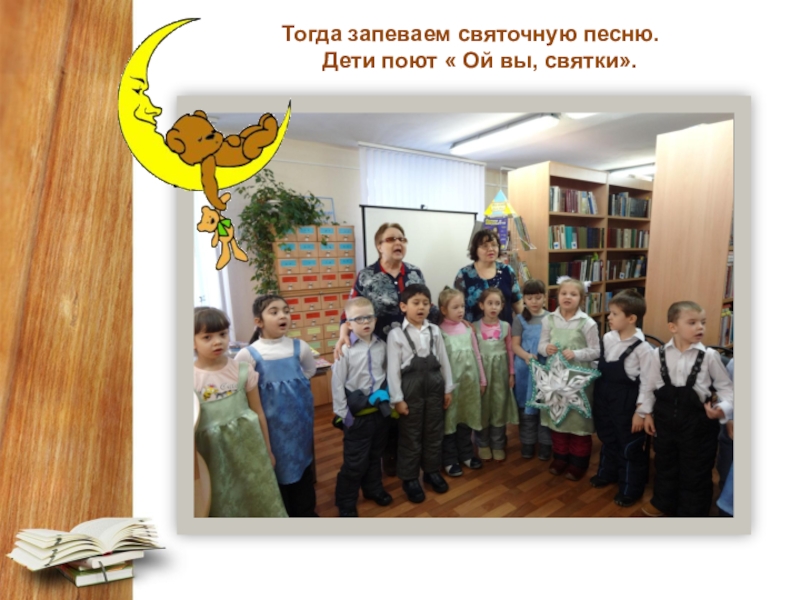 Слайд 9 Тогда запеваем святочную песню.    Дети поют « Ой вы, святки».
