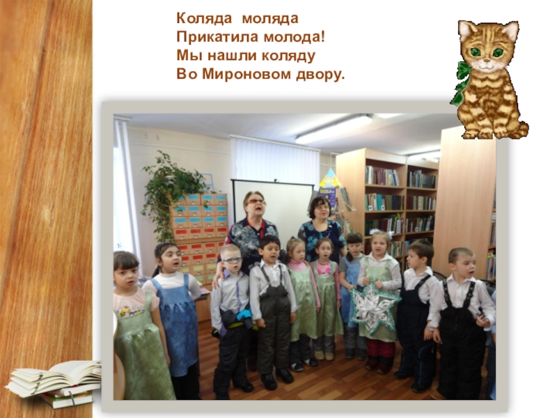 Слайд 6 Коляда ­ моляда                  Прикатила молода!                  Мы нашли коляду                  Во Мироновом двору.