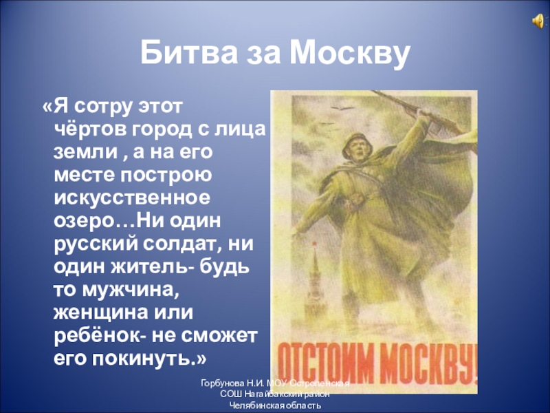 Горбунова Н.И. МОУ Остроленская СОШ Нагайбакский район Челябинская область
