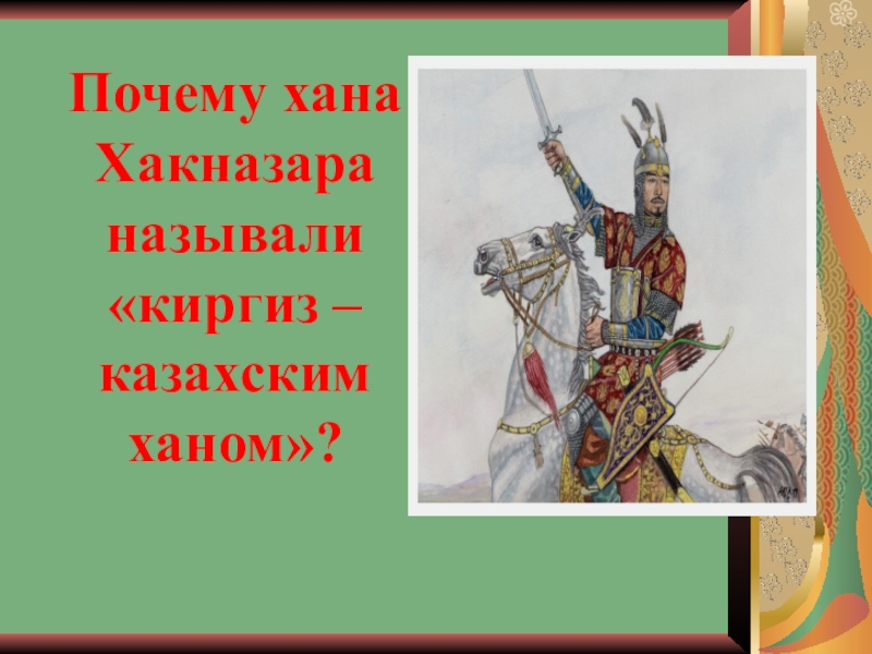 Слайд 27Почему хана Хакназара называли «киргиз – казахским ханом»?