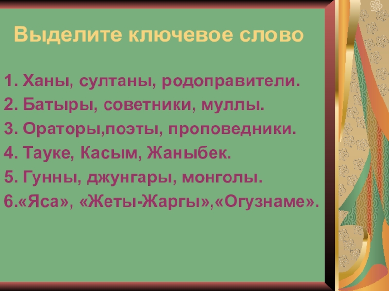 Слайд 29Сын хана Шигая, брат хана Таукела. Возглавлял Каазахское ханство, столица г.Туркестан.