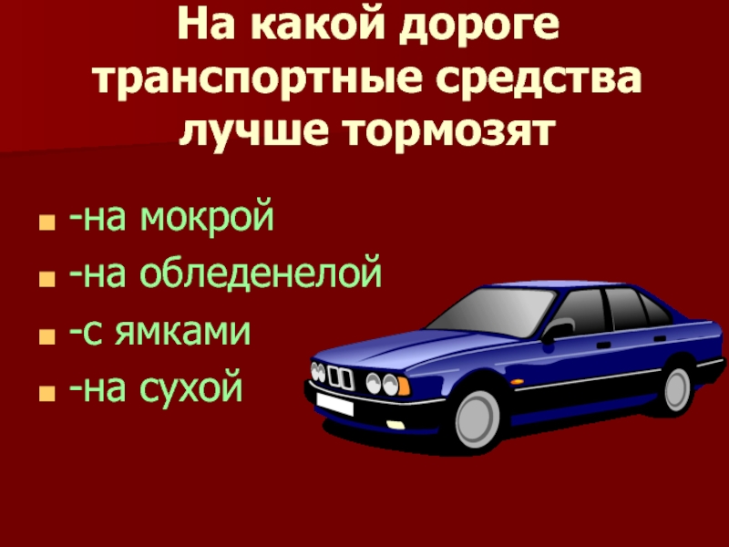 Слайд 3На какой дороге транспортные средства лучше тормозят