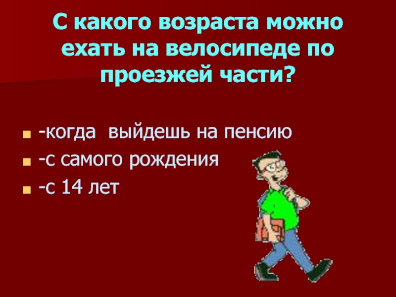 Слайд 4С какого возраста можно ехать на велосипеде по проезжей части?