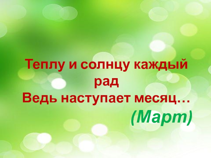 Теплу и солнцу каждый рад Ведь наступает месяц… (Март)