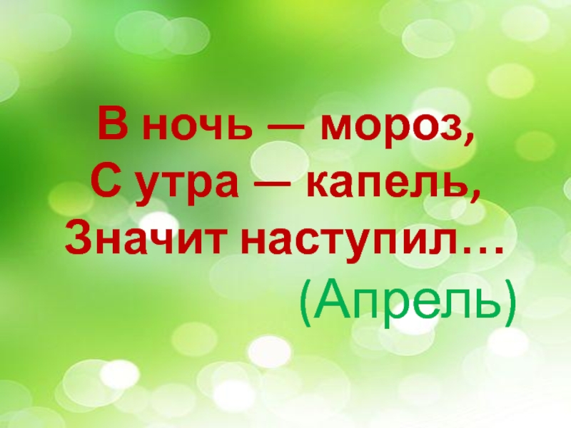 В ночь — мороз, С утра — капель, Значит наступил… (Апрель)