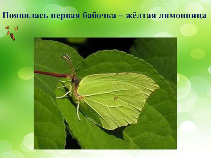 Слайд 15Появилась первая бабочка – жёлтая лимонница