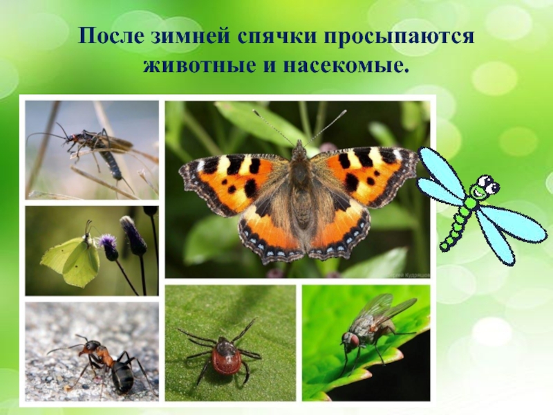 Слайд 16После зимней спячки просыпаются животные и насекомые.